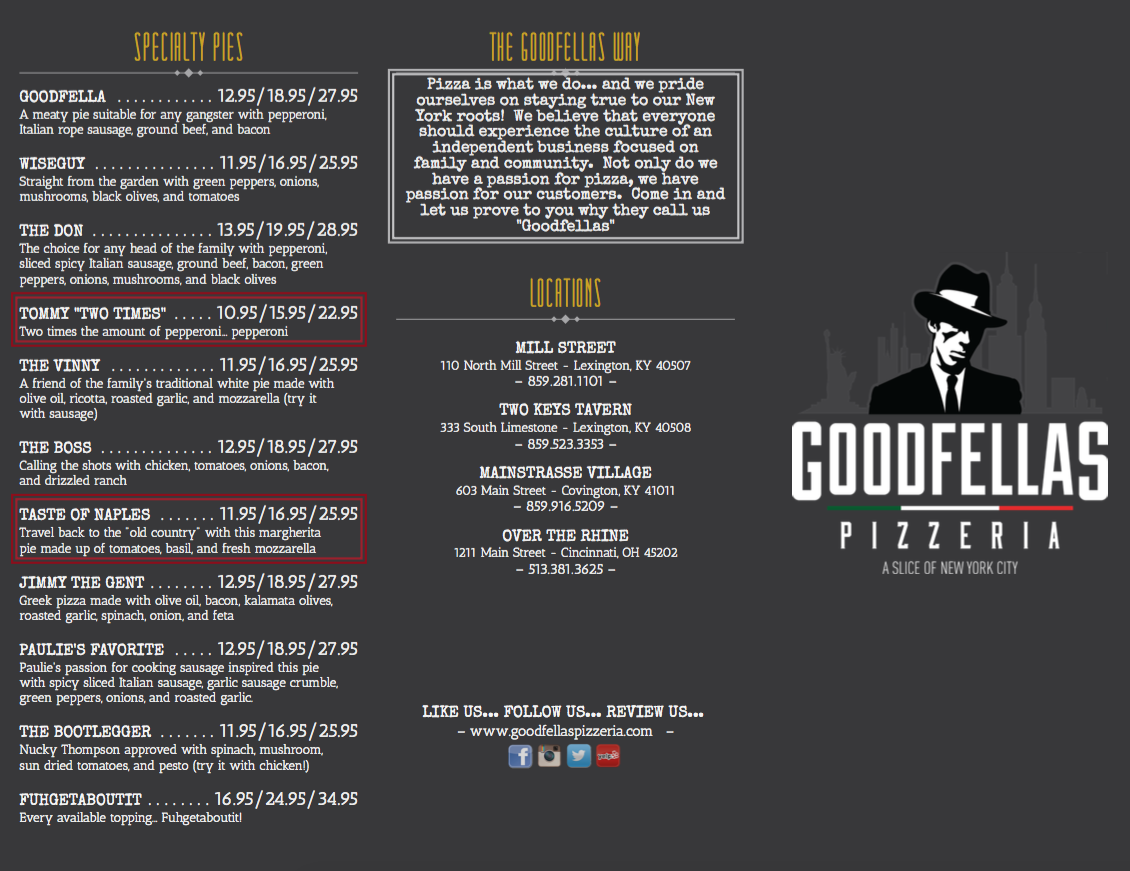 Goodfellas Pizzeria - Mill Street Menu (Update 2025)